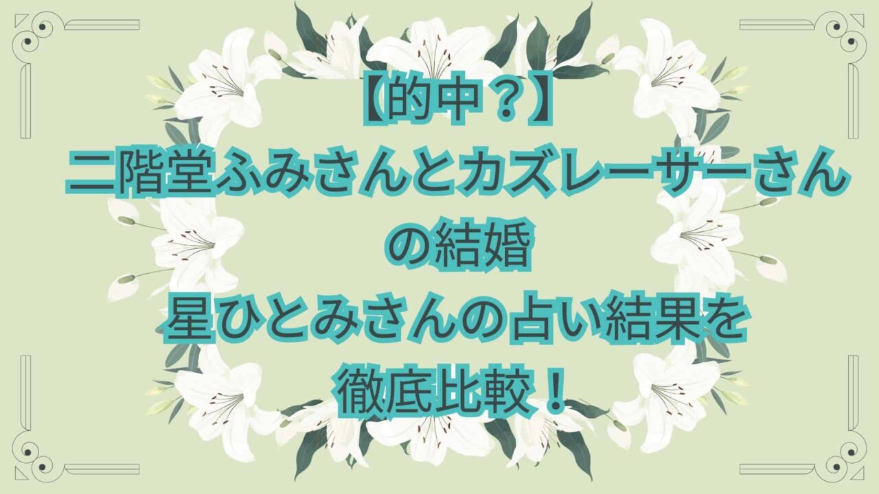 星ひとみさんは、二階堂ふみさんの結婚について、こう断言しました。