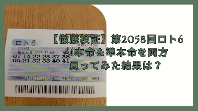 【徹底検証】第2058回ロト6|AI本命&準本命を両方買ってみた結果は?第2058回ロト6では、事前にAI分析による 本命予想 準本命予想 の2パターンを公開し、実際に両方購入しました。